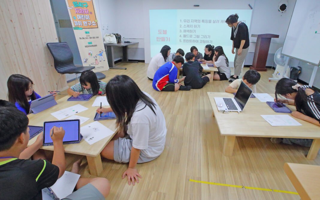 이날 수업은 ‘얼씨구 지화자 어린이 놀이연구소’ 프로그램의 7회차 수업으로 진행됐으며, ‘도블 게임’ 제작에 앞서 태인동을 주제로 지역을 상징하는 캐릭터를 구상하고, 아이패드를 활용해 디지털 캐릭터로 제작하는 활동이 펼쳐졌다.