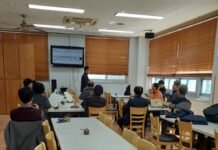 박현주 강사는 “오늘은 여러분이 다뤄보지 못한 공구도 있을 텐데, 직접 전동드릴을 사용해보며 체험하는 의미 있는 시간이 될 것”이라며 안전하고 즐거운 체험을 강조했다. 김영란 강사는 미리 제작한 견본을 보여주며 목재의 끼워 맞춤과 특이 사항을 설명해 이해를 도왔다.