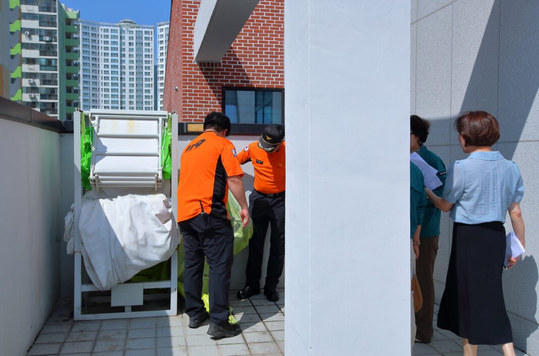 완강기 설치는 2005년부터 모든 건축물의 3층부터 10층까지 설치가 의무화 됐다. 완강기 설치율에 비해 대부분 잘 모르는 분위기였다. 완강기 특성상 추락과 고소공포를 막기 위해서는 실제 체험이 중요하다. 완강기는 사용자의 몸무게에 의해 자동으로 내려올 수 있는 피난기구로 연속해서 사용 가능하다.