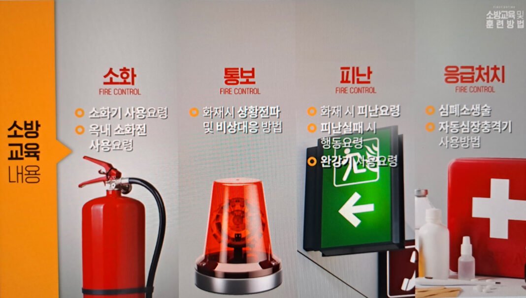 광양시 가족문화센터 합동 소방훈련을 마치고, 훈련 총평과 간단한 소방교육을 실시한 후 훈련을 마쳤다.