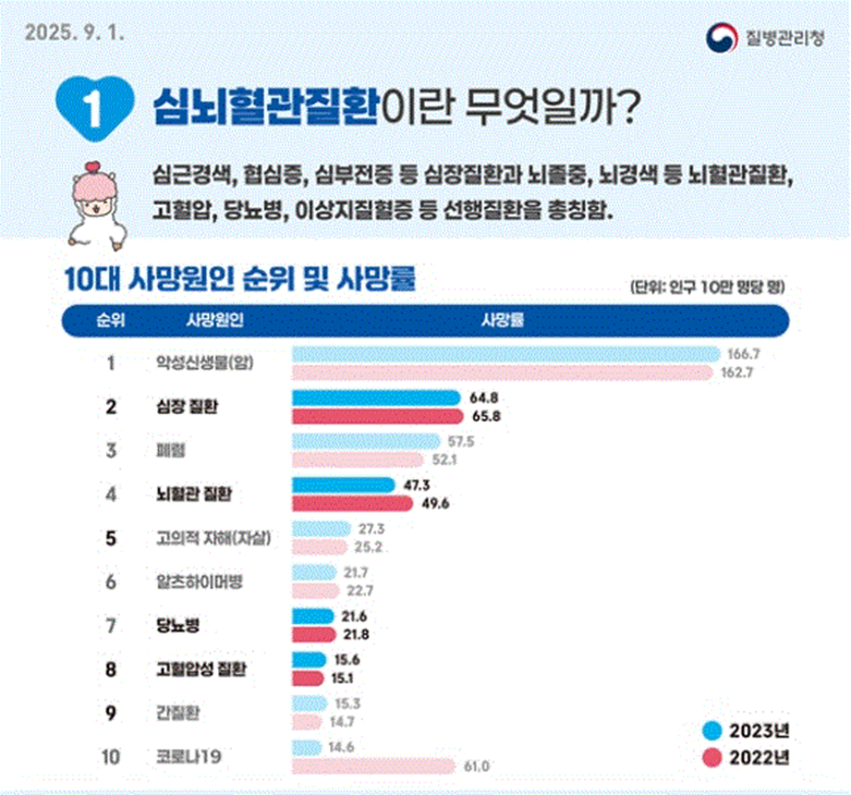심근경색, 협심증, 뇌졸중 같은 치명적 질환은 물론, 고혈압·당뇨병·이상지질혈증 등 선행질환까지 포함돼 조기 관리의 중요성을 강조한다.