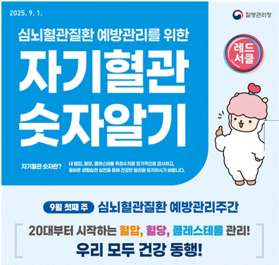 질병관리청(청장 임승관)은 9월 한 달 동안 전국 지방자치단체와 함께 ‘자기혈관 숫자알기, 레드서클 캠페인’을 펼친다고 지난 8월 31일 밝혔다.