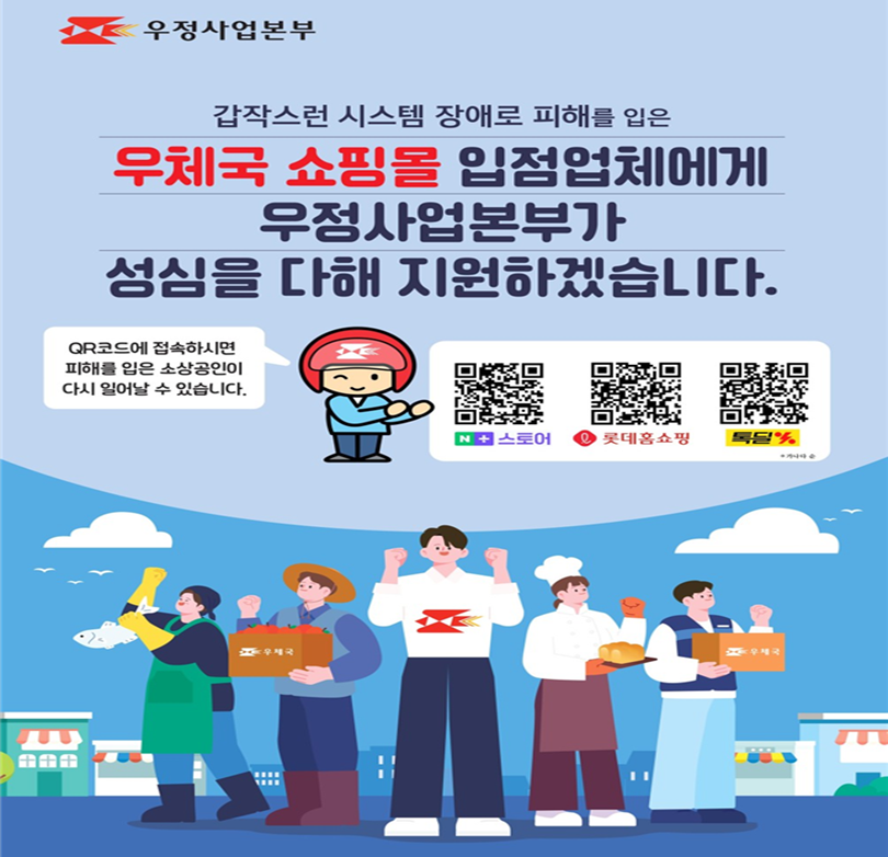 이번 특별전은 쇼핑몰 중단으로 판매길이 막힌 입점 업체에 새로운 판로를 열어주기 위한 조치다. 전국 우체국 창구에서도 피해 업체 상품을 직접 홍보·판매해 연휴 전 재고 소진을 돕고 있다.
