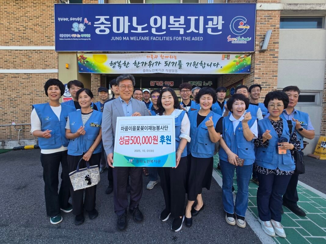 포스코 마음이음 꽃꽂이 재능봉사단(단장 이환성)은 10월 1일 중마노인복지관에 성금 50만 원을 지정 기탁했다.