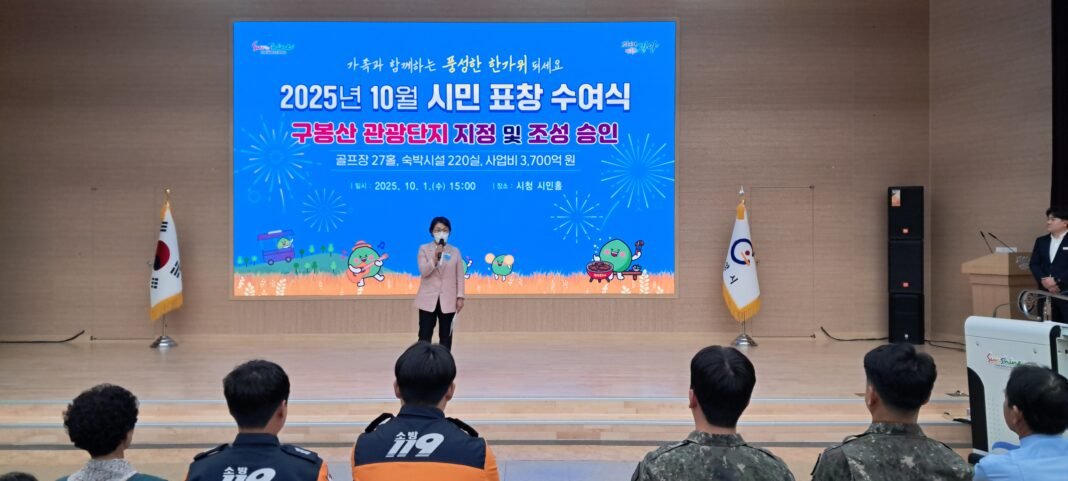 정인화 시장은 축사를 통해 “광양은 시민 한 분 한 분의 나눔과 실천으로 성장해 온 도시”라며, “특히 구봉산 관광단지가 전라남도로부터 공식 승인된 것도 시민 여러분의 참여 덕분”이라고 밝혔다. 이 관광단지는 골프장, 문화·레저시설, 주거시설 등이 어우러진 복합단지로, 오는 11월 말 착공을 앞두고 있다.