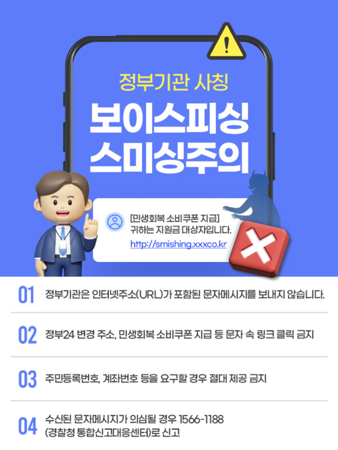 국가정보자원관리원 화재로 인한 대민서비스 중단을 틈타 정부기관을 사칭하거나 피해보상을 빌미로 한 스미싱·보이스피싱 시도가 급증하면서 국민 피해가 우려되고 있다.