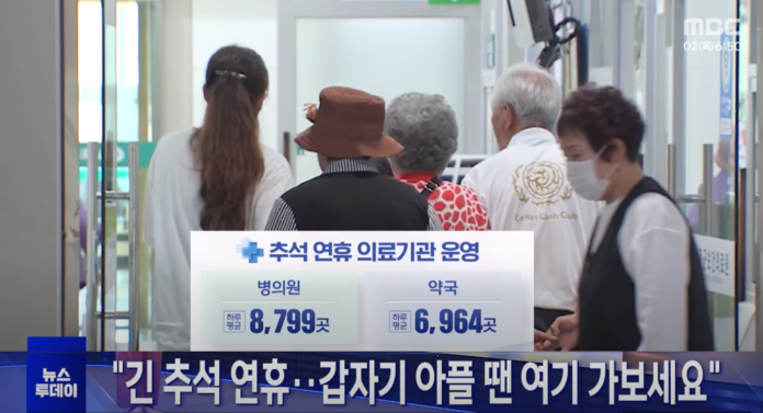 10월 3일부터 9일까지 추석연휴 치료를 받을 수 있는 병원과 약국은 전국 평균 병원 8799곳, 약국은 1만5763곳이다.