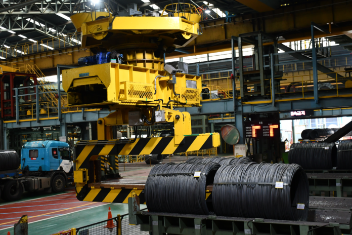이번에 개발한 크레인 자동화 기술을 활용하면 한 번에 최대 8톤의 선재 코일 제품을 정확하고 안전하게 운송할 수 있다.