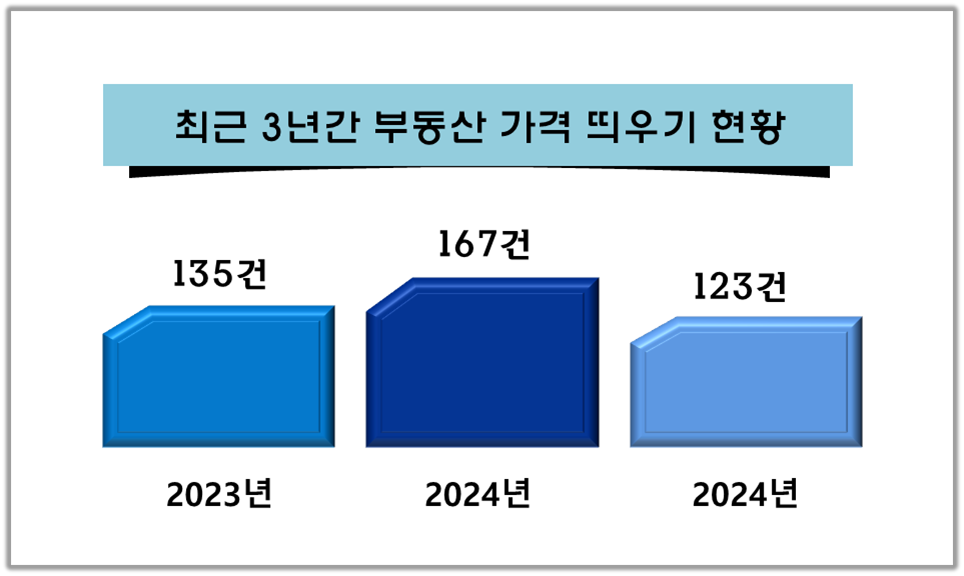 이에 대해 박성주 본부장은 “의도적인 시세조작 등 불법 거래에 대해 철저하고 신속하게 수사하겠다”며 “국토교통부와 협력해 공정하고 투명한 시장 질서 확립에 최선을 다하겠다”고 말했다.