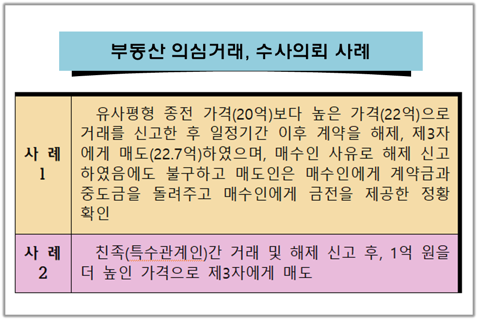 국토부는 이번 조사를 통해 ‘가격 띄우기’뿐 아니라 세금 탈루, 편법 증여 등 다른 위법 정황이 드러날 경우 국세청 등 관계기관과 즉시 정보를 공유해 추가 조사와 조치를 추진할 방침이다.