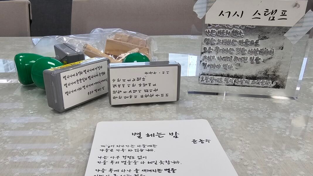 ‘이런 날’(10월 29~31일)은 2층 자료실과 계단을 중심으로 윤동주 시인의 작품 전시와 ‘시어(詩語) 스탬프’ 체험이 진행된다. 시구를 직접 찍어보며 문학 언어를 손끝으로 느낄 수 있는 참여형 프로그램이다.