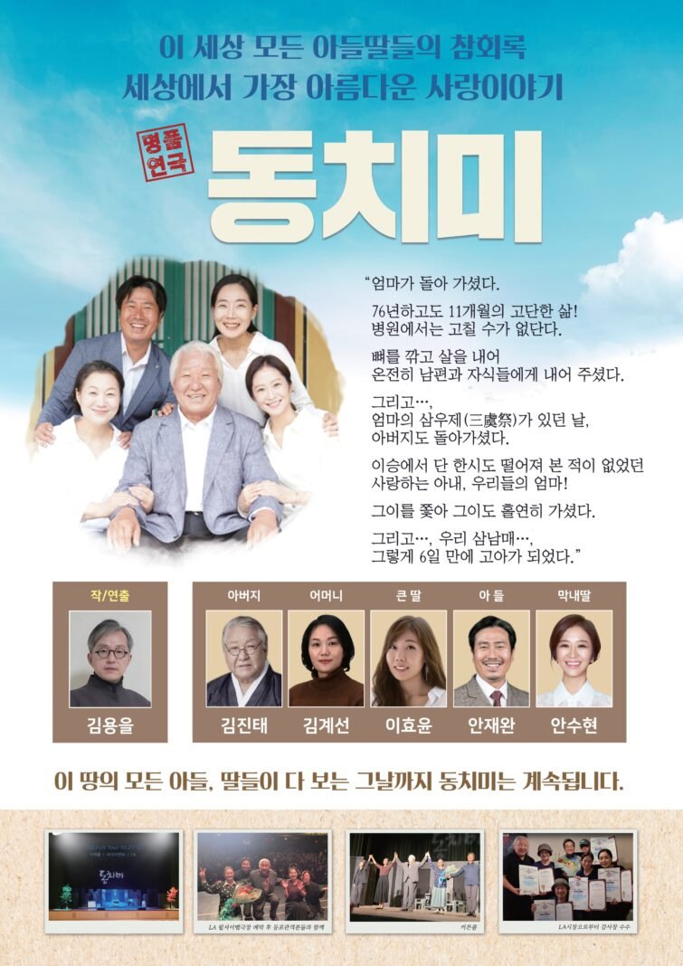 극 중 “애쓰셨어요, 당신 덕에 우리 가족이 살았습니다.”, “먼저 가 있어요, 곧 따라갈게요.” 등의 대사는 관객의 마음을 울리며 세대를 초월한 공감을 전한다. ‘동치미’는 가족의 의미와 사랑을 유쾌하고 따뜻하게 풀어낸 감성 가족극으로, “한 번도 안 본 사람은 있어도 한 번만 본 사람은 없다”는 찬사를 받았다.