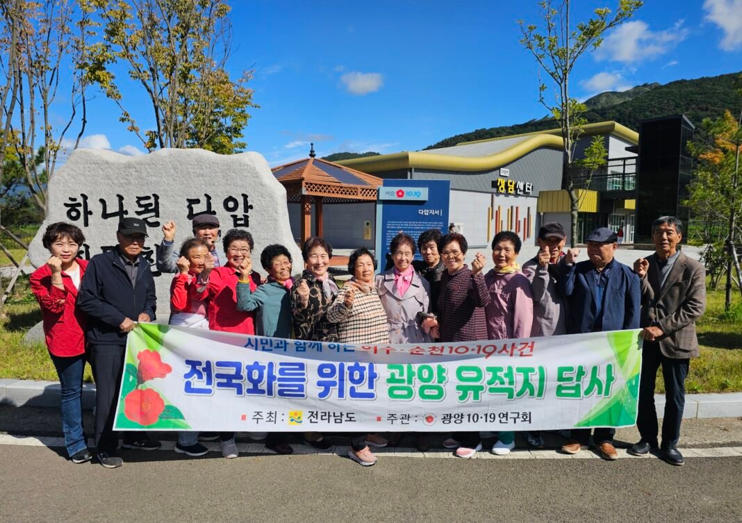 대한노인회 광양지회(지회장 김종규)가 운영하는 서부대학 회원 40여 명은 22일 광양시의 지원과 ‘광양10·19연구회’의 주관으로 여순사건 동부지역 유적지 답사를 진행했다.
