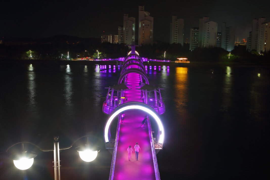 동편 바닷가에서는 금호대교·삼화섬·길호대교의 달빛해변 일대를 조망할 수 있으며, 특히 삼화섬과 금호동을 잇는 무지개다리의 주경·야경 조명은 환상적인 빛의 장관을 연출한다. 이곳은 ‘낭만청춘 버스킹’이 함께 열리며 시민과 관광객이 즐겨 찾는 야경 명소로 급부상하고 있다.