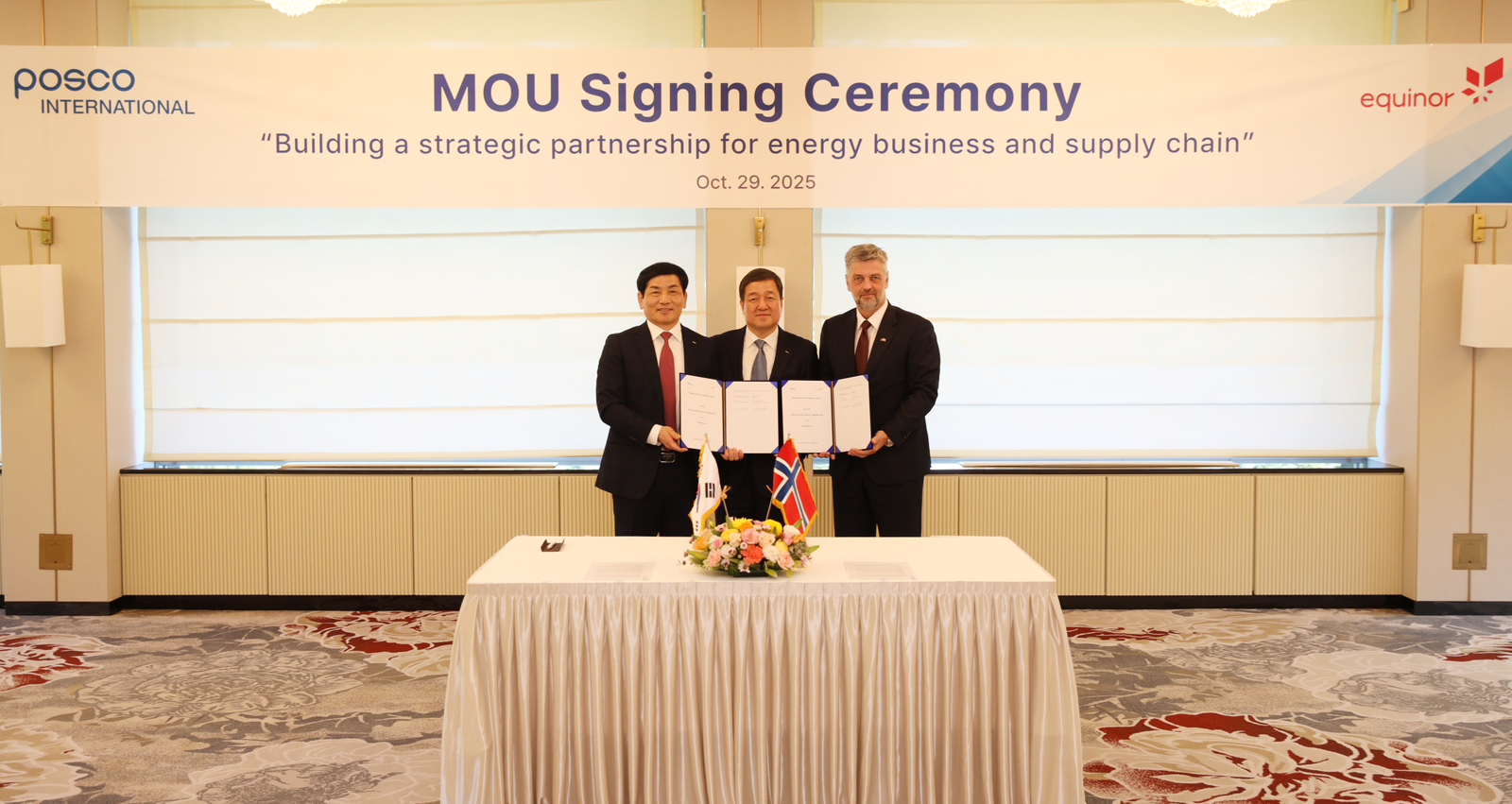 이날 협약식에는 포스코인터내셔널 이계인 사장과 비욘 잉게 브라텐(Bjørn Inge Braathen) 에퀴노르 코리아 대표이사 등 양사 주요 관계자들이 참석했다.