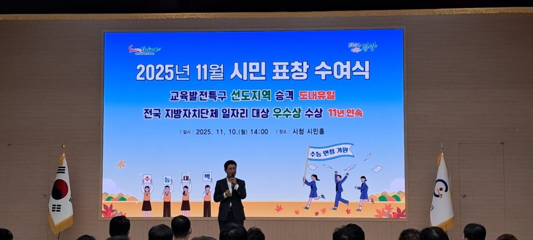 이날 행사에는 정인화 광양시장과 수상자 가족, 시민 등 100여 명이 함께 참석해 수상자들의 노고를 격려하며 축하의 시간을 가졌다.