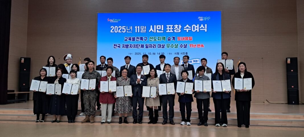 광양시는 지난 11월 10일 시청 시민홀에서 ‘10월 시정발전 유공 시민 표창 수여식’을 열고, 지역사회 발전에 헌신해온 시민 42명에게 표창장을 수여했다.