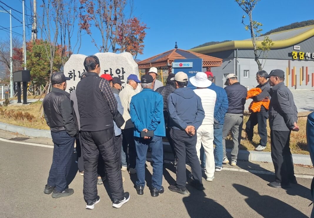 해설사의 설명을 듣고 있는 금호 그라운드골프 회원들. 사진=이경희