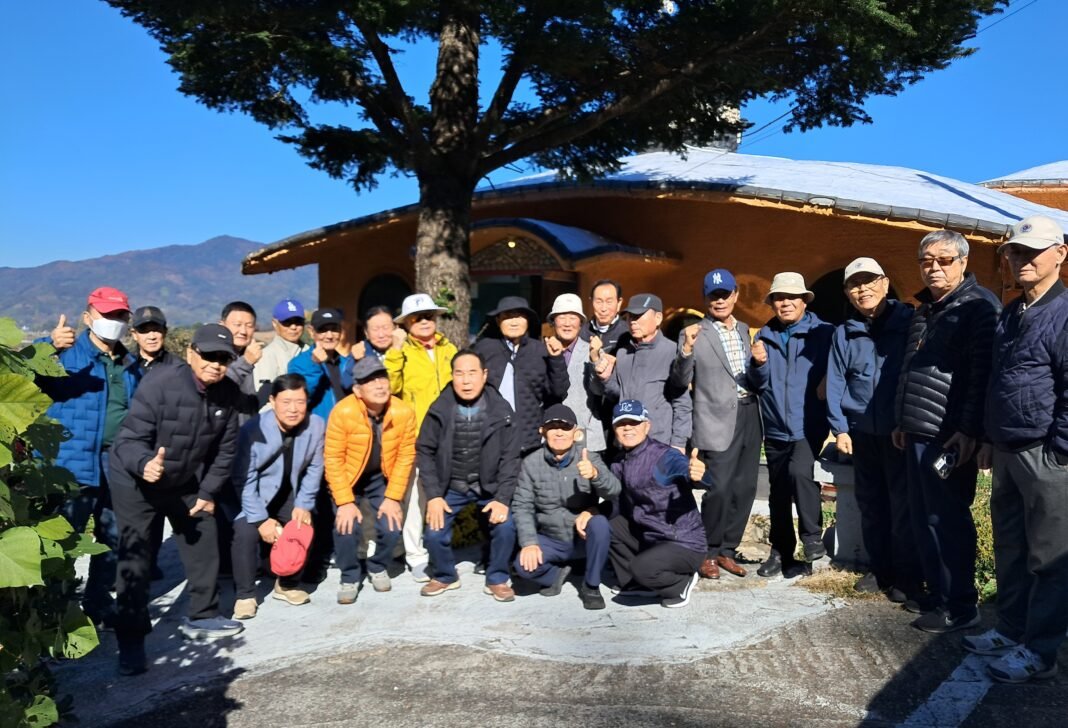 포스코 동우회 금호그라운드골프회(회장 이만용) 회원 22명이 15일 여순사건 광양 유적지 동부권 8개소를 답사했다. 참가자들이 어치 느재마을 앞에서 기념촬영하고 있다. 사진=이경희