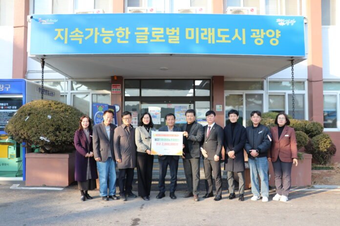 봉강친환경영농조합법인(대표 박광기)은 2026년 1월 7일 봉강면사무소에서 지역사회를 위한 나눔실천의 일환으로 (재)광양시사랑나눔복지재단(이사장 김재경)에 성금 200만원을 전달했다.