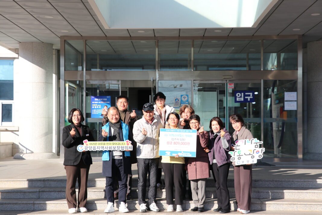 서희스타힐스 아파트 입주자 대표회의(회장 김명숙)는 지난 1월 9일 광양읍사무소에서 지역사회를 위한 나눔실천의 일환으로 (재)광양시사랑나눔복지재단(이사장 김재경)에 성금 80만9000원을 전달했다.