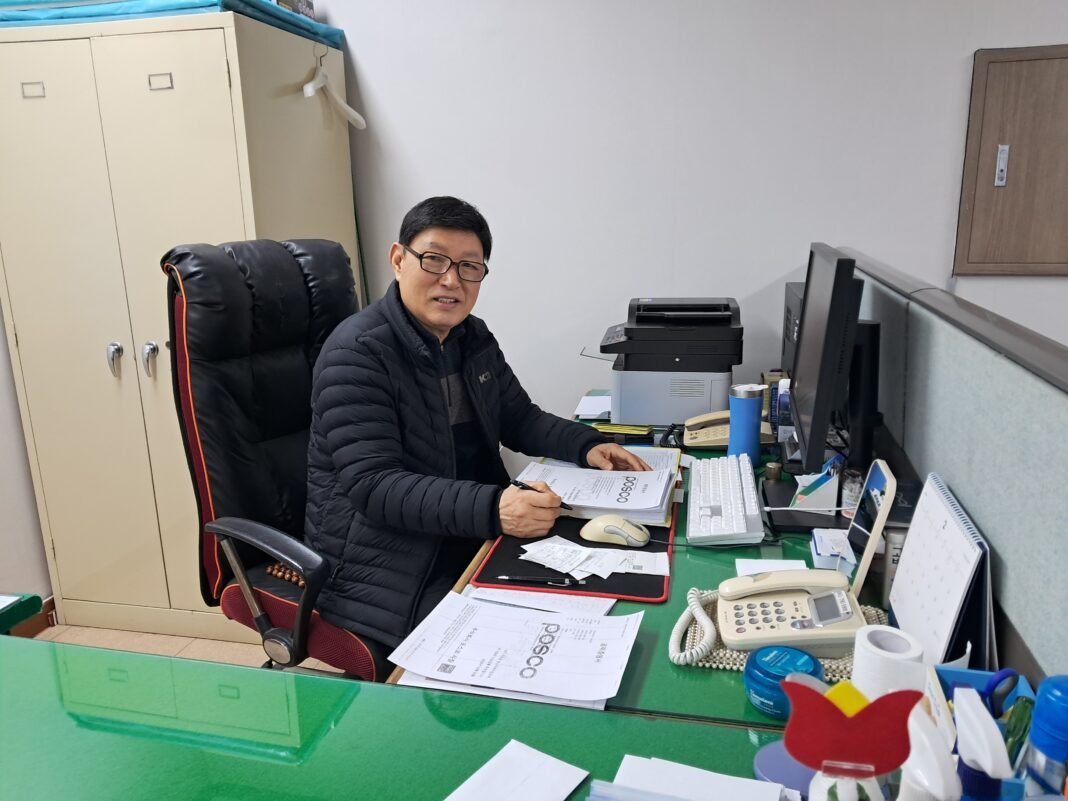 포스코동우회 광양지회 이강복 사무장이 업무를 하고 있다. 사진=이경희
