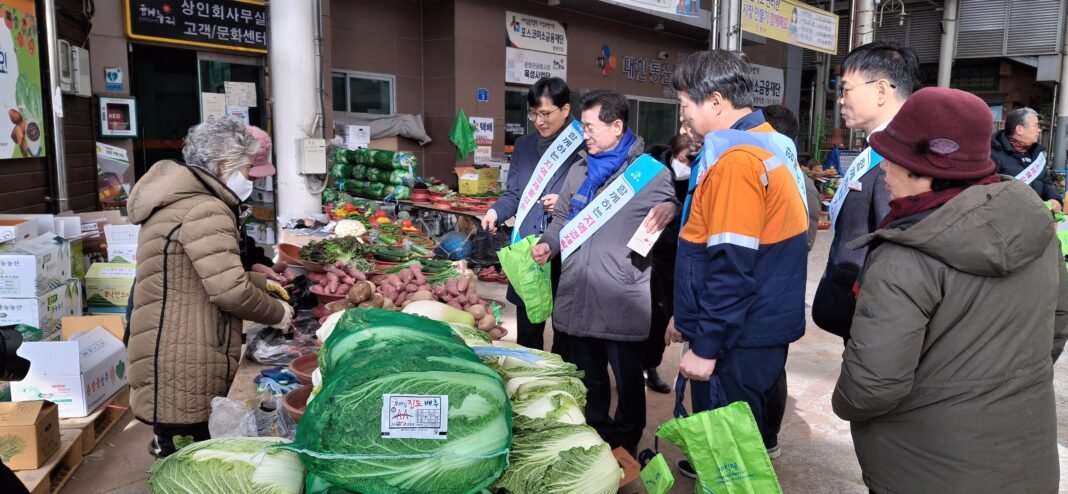 정인화 광양시장은 설 명절을 앞둔 지난 2월 6일 광양5일시장을 찾아 상인들을 격려하고 장보기 행사에 참여하며 민생 현장 소통에 나섰다.