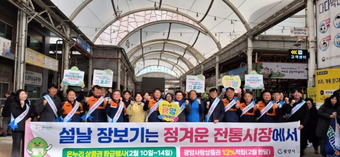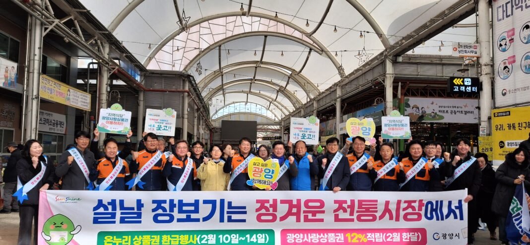 또한 광양시는 농림축산식품부와 해양수산부가 추진하는 ‘2026년 설 명절 온누리상품권 환급행사’에 관내 전통시장 4곳이 선정돼 지역 소비 활성화에 나선다고 밝혔다. 이번 행사는 설 명절을 앞두고 소비자 물가 부담을 완화하고 전통시장 이용을 촉진하기 위해 마련됐으며, 2월 10일부터 14일까지 5일간 전국 200개 전통시장에서 동시에 진행된다.