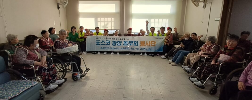 포스코 광양동우회 광양봉사단(단장 이강봉)은 2월 21일 광양시 중마동에 위치한 ‘중마사랑요양원’을 찾아 어르신들을 위한 재능나눔 봉사활동을 펼쳤다. 이날 봉사활동에는 주간 보호 어르신 15명과 입소 어르신 9명 등 총 25명이 함께해 뜻깊은 시간을 보냈다.