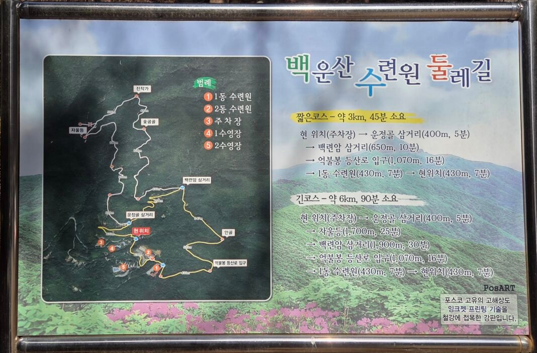 광양시는 시민들의 건강과 여가를 위해 백운산 둘레길 9개 코스를 걷기 명소로 추천하고 있다. ‘천년의 숲길'(1코스·10.86km)부터 ‘함께하는 동행길'(9코스·25.4km)까지, 가족 단위 여행객부터 걷기 애호가까지 누구에게나 제격인 힐링 여행지다. 각 코스 시작 지점마다 주차 공간이 마련돼 있으며, 광양시청 홈페이지나 관광안내소에서 지도를 미리 구하면 더욱 알차게 즐길 수 있다.