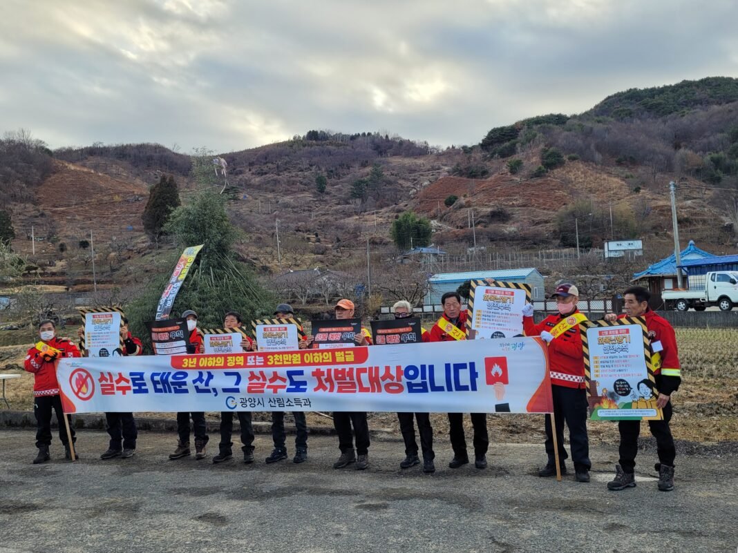 “안전이 최우선인 축제 문화”. 광양시 산림소득과 산불전문예방진화대원들이 이천마을 달집태우기 현장 곳곳에서 산불 예방 캠페인을 펼치며 안전한 전통 계승을 지원하고 있다. 사진=이호선