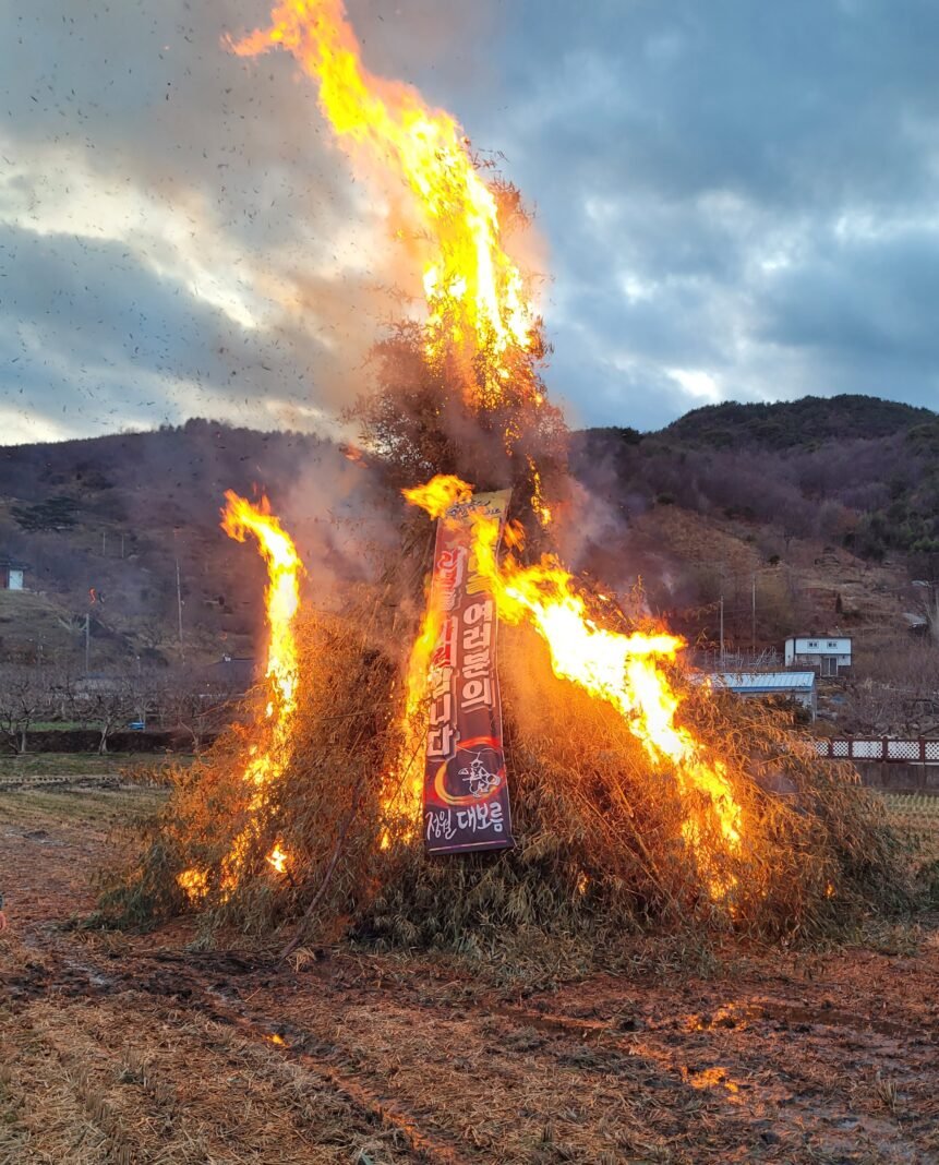 저녁 해 질 무렵, 강병재 진상면장과 박종욱 이장, 그리고 문창연 청년회장이 주민들의 염원을 담아 동시에 지핀 불꽃이 ‘망올이(달집)’를 타고 기운차게 치솟자 현장의 주민들로부터 뜨거운 환호가 터져 나왔다. 활활 타오르는 불꽃은 묵은 액운을 멀리 실어 보내고, 대나무 마디가 터지는 경쾌한 소리는 다가올 풍년을 예고하는 듯했다. 주민들은 밤하늘을 수놓은 장관을 지켜보며 병오년 새해의 힘찬 도약을 다짐했다.