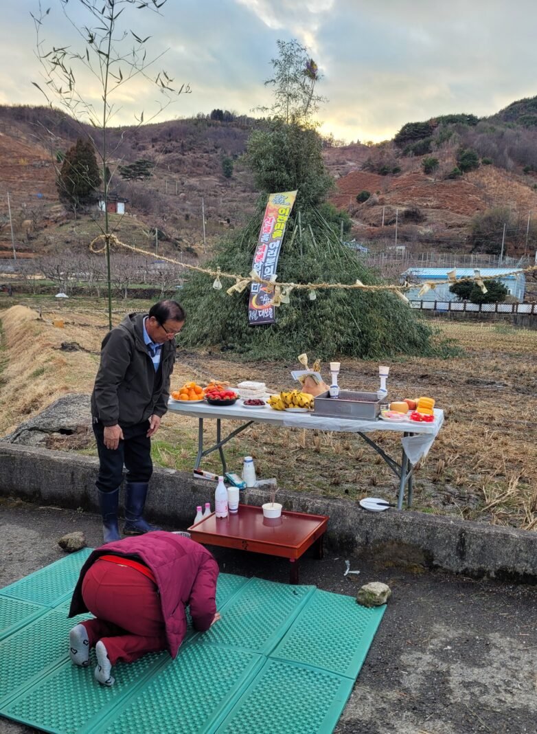 “올 한 해도 무탈하게 하소서”. 2026년 병오년(丙午年) 정월대보름을 맞아, 광양 진상면 이천마을의 한 주민이 정성껏 차려진 고사상 앞에서 마을의 안녕과 가족의 건강을 기원하며 간절히 예를 갖추고 있다. 사진=이호선