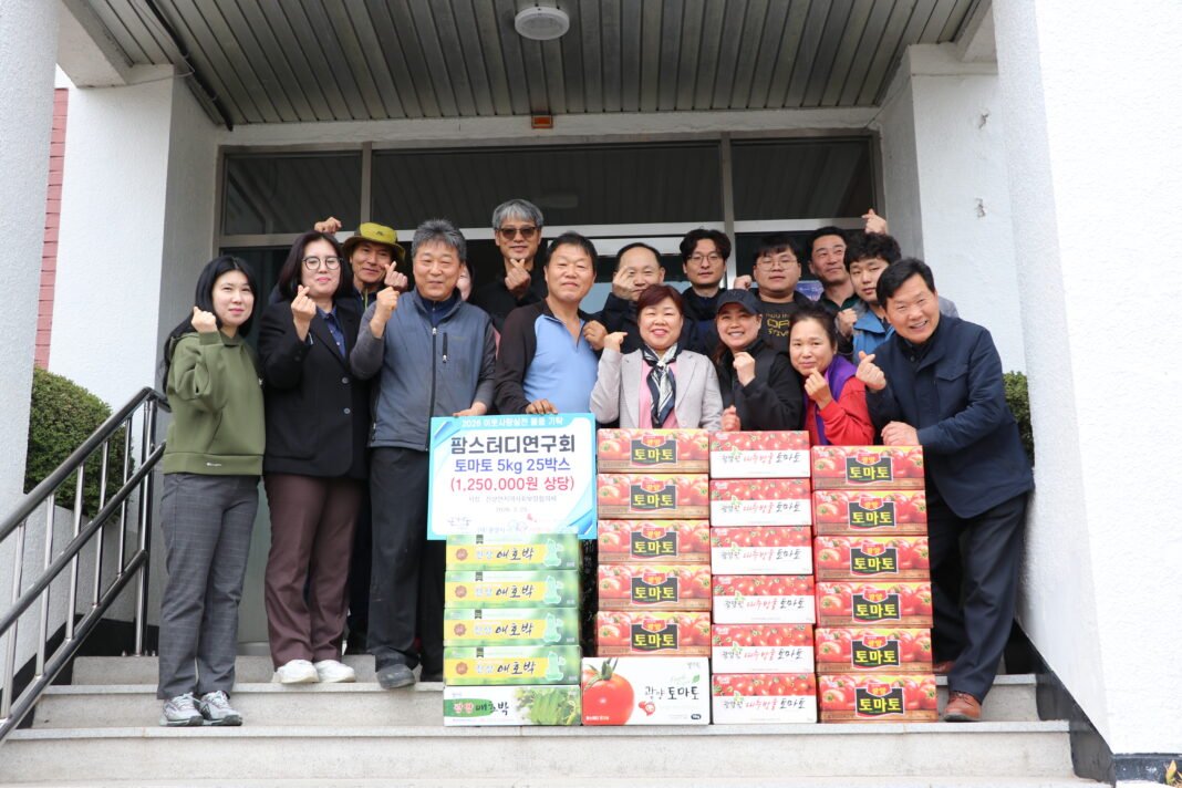 팜스터디연구회(회장 문영일)는 지난 25일 진상면사무소에서 ‘광양시사랑나눔복지재단'(이사장 김재경)에 토마토 5㎏ 25박스(125만 원 상당)를 전달했다. 이번에 기탁한 토마토는 회원들이 올봄 직접 재배하고 수확한 것으로, 진상면지역사회보장협의체를 통해 저소득 독거노인 및 복지 사각지대 이웃들의 건강한 식생활 지원에 사용될 예정이다.