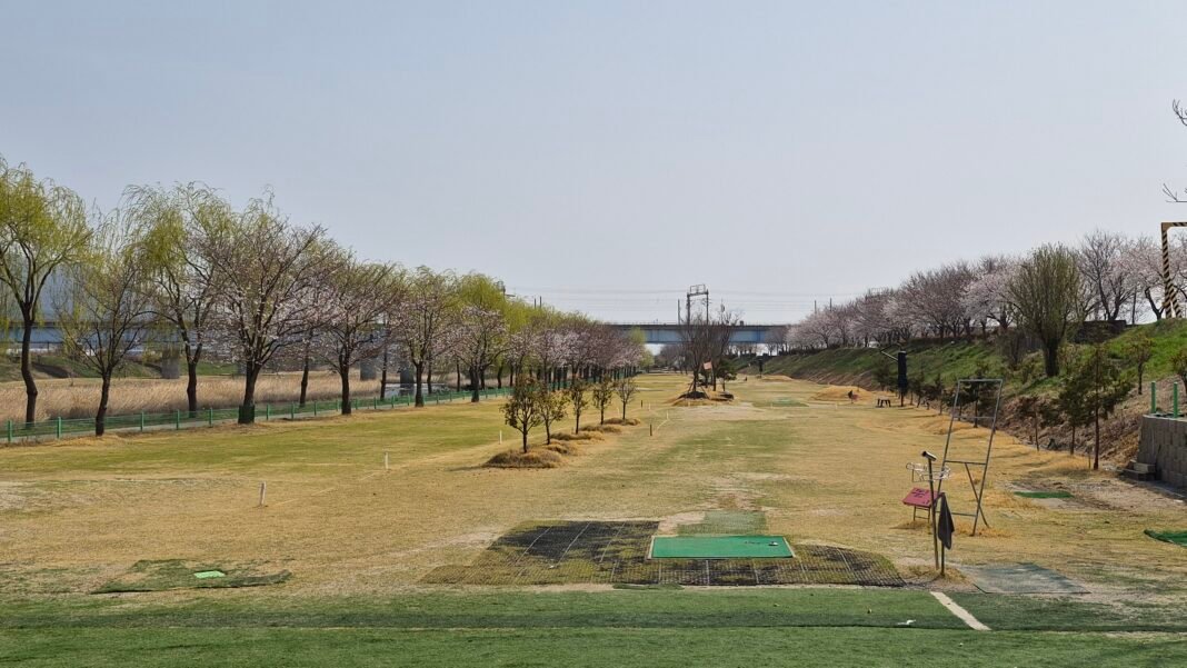 기자는 3월 27일 오후 동천파크골프장을 찾아 봄기운이 올라오는 구장 풍경을 둘러봤다. 골프장 주변의 벚꽃은 약 60~70% 꽃망울을 터뜨리며 연분홍빛 봄 풍경을 만들고 있었고, 늘어진 능수버드나무 가지에는 연노란 새잎이 물들어 봄의 시작을 알리고 있었다.