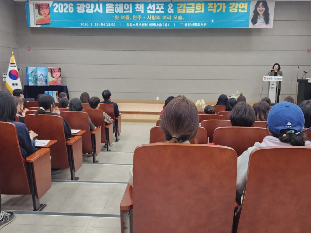 광양시립도서관은 지난 3월 26일 성황스포츠센터 세미나실에서 ‘2026 올해의 책 선포식 및 김금희 작가초청 강연’을 성황리에 개최했다.