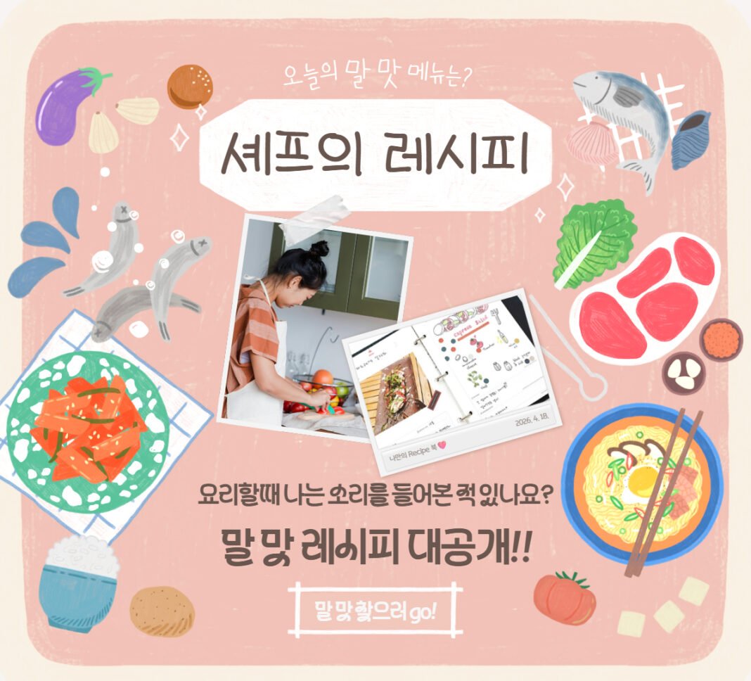 참여자들은 요리 과정에서 느낀 소리와 움직임, 감정과 상상을 언어로 풀어내고, 이를 사진과 삽화로 기록해 자신만의 레시피북으로 제작하게 된다. 이러한 과정을 통해 의성어와 의태어의 개념과 차이를 이해하고, 상황에 맞게 활용하는 언어 표현 능력 또한 향상될 것으로 기대된다.