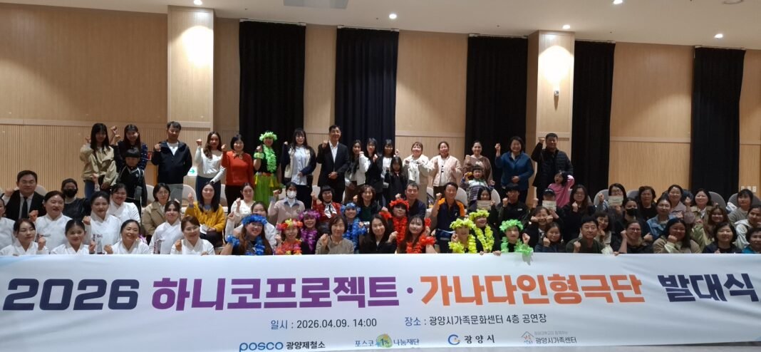 조현옥 부의장은 “하니코프로젝트와 가나다인형극 발대식을 진심으로 축하드린다”며 “지속적인 후원을 이어온 포스코 1% 나눔재단과 광양제철소에 감사드리며, 의회에서도 다문화 가족의 안정적인 정착을 위한 정책적 지원을 아끼지 않겠다”고 밝혔다.