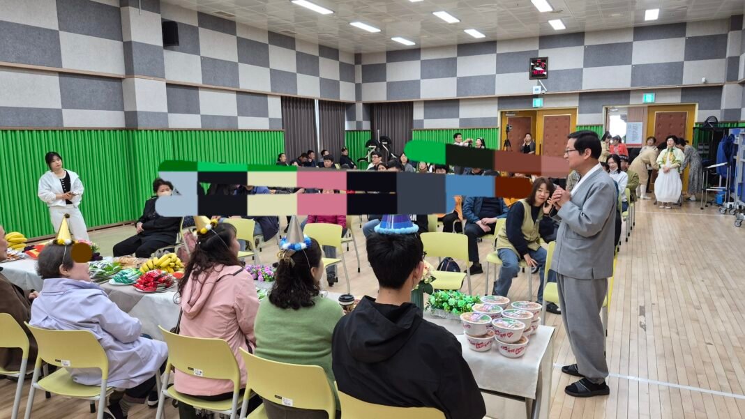 정헌주 중마장애인복지관 관장은 축하 인사를 통해“오늘 생일을 맞은 우리 장애인 여러분께 진심으로 축하드린다”며 “오늘 이 생일이 기쁘고 즐겁고 행복한 하루가 되기를 바라며, 매달 생일 축하 공연을 후원해 주는 가야문화예술공연단에도 감사드린다”고 말했다. 사진=최학인