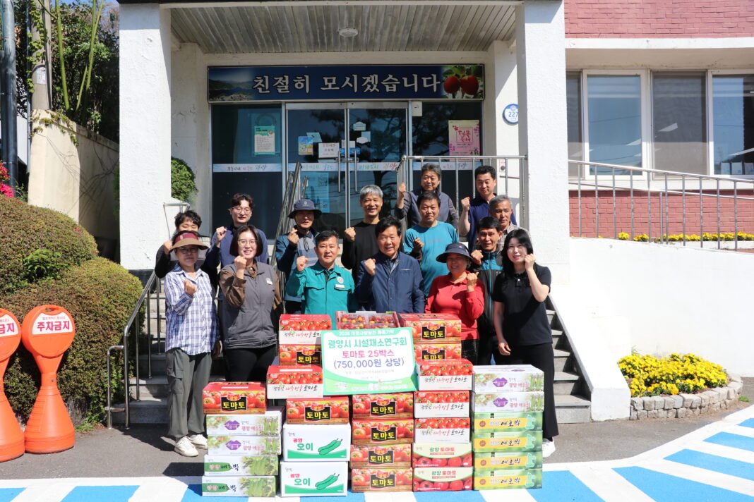광양시 시설채소연구회(회장 한성식)는 4월 15일 진상면에서 지역사회를 위한 나눔실천의 일환으로 (재)광양시사랑나눔복지재단(이사장 김재경)에 농산물 40박스(100만 원 상당)를 전달했다.