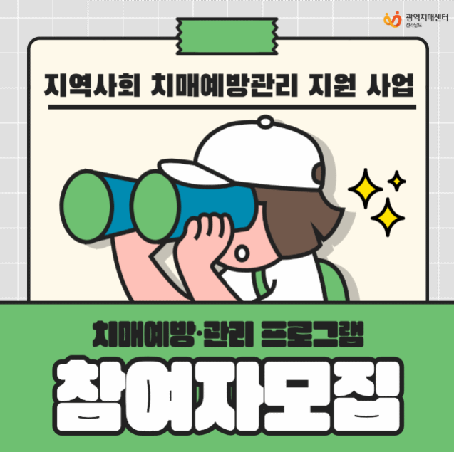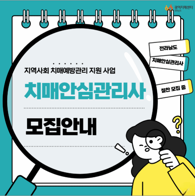 전라남도광역치매센터가 지역 어르신의 인지 건강을 지키고 치매 예방 환경을 조성하기 위해 ‘치매안심관리사’와 ‘치매예방·관리 프로그램 참여자’를 모집한다.
