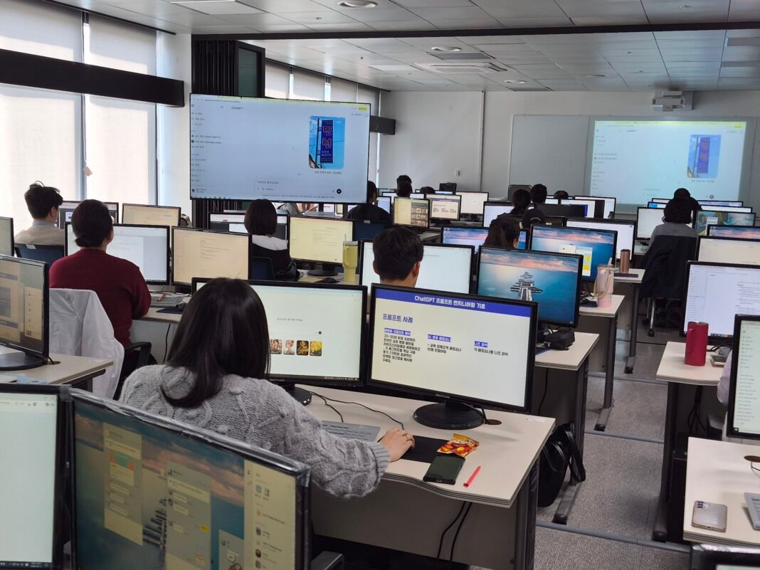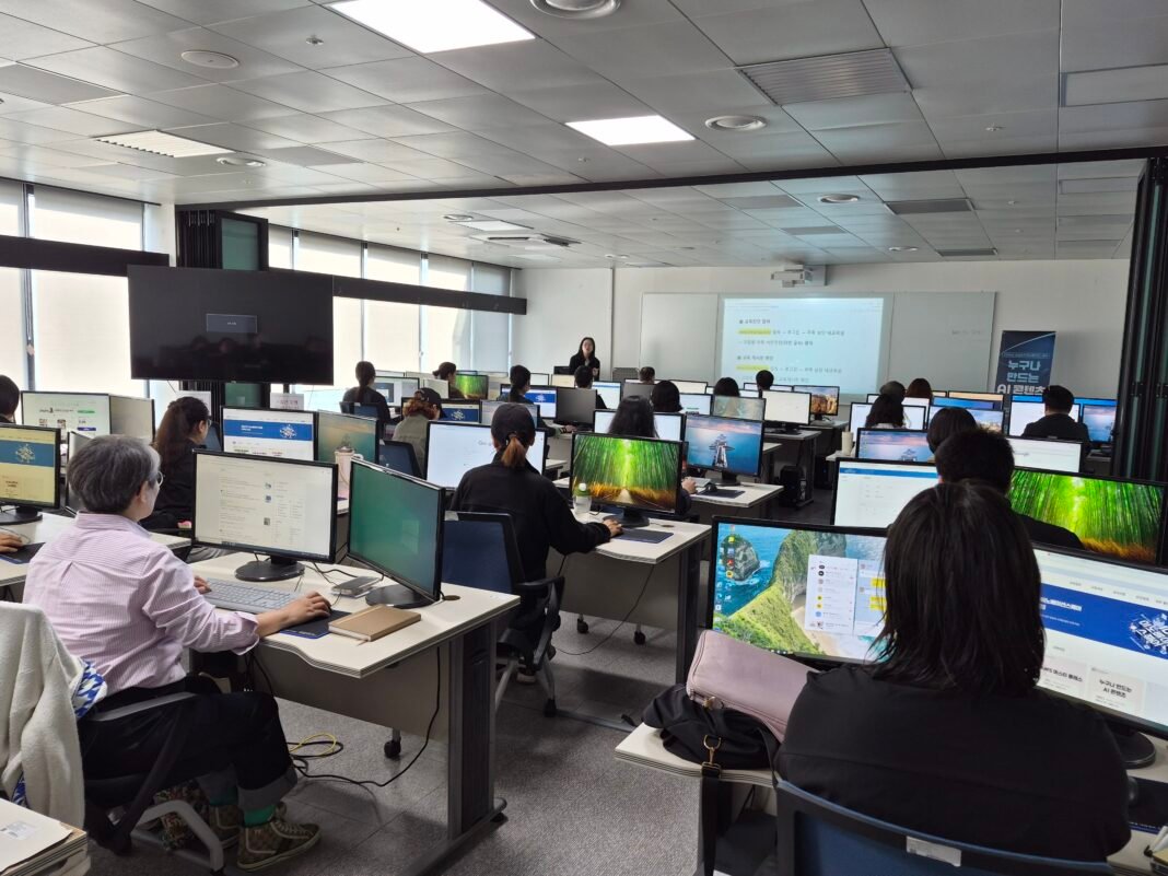 ‘누구나 만드는 AI 콘텐츠’ 교육 첫날, 수강생들이 생성형 AI의 핵심인 ‘ChatGPT 프롬프트 엔지니어링 기초’ 이론을 경청하며 실무 적용 방안을 고민하고 있다. 사진=이호선