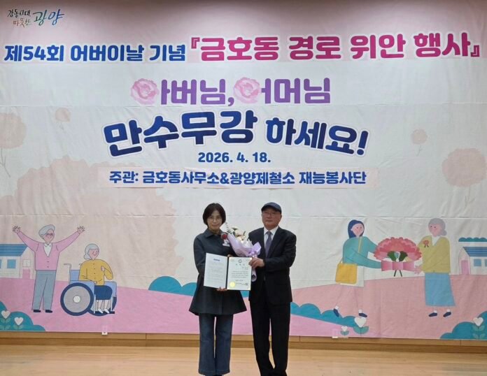 광양시 금호동은 지난 18일 금호동 주민자치센터 일원에서 제54회 어버이날을 기념하는 ‘경로위안행사’와 ‘광양제철소 재능봉사단 특별봉사’를 성황리에 개최했다.