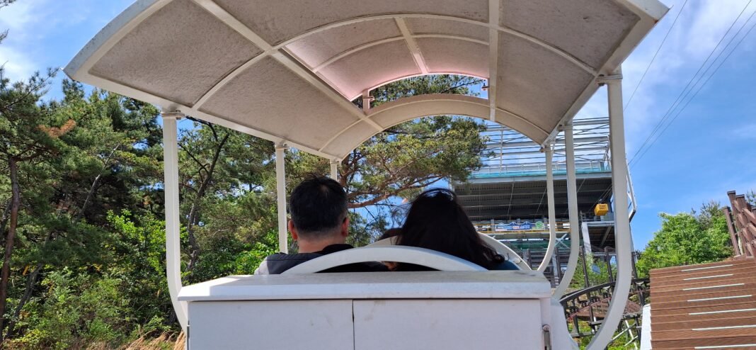 매표소에서 출발해 약 280m 구간을 최고경사 42도로 오르는 모노레일 모습. 사진=김대현