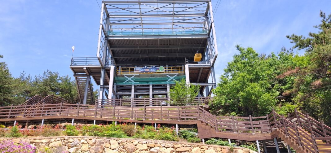 망덕산 정상에 위치한 ‘별빛 스카이’ 짚와이어 탑승장 전경. 사진=김대현