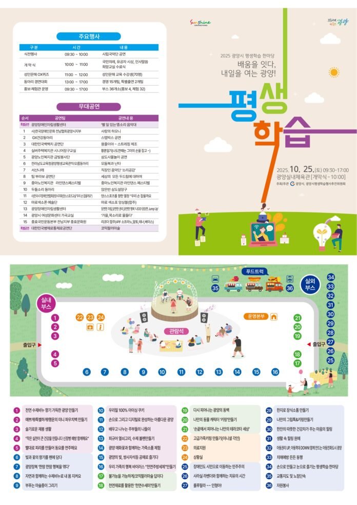 광양시가 시민 모두가 함께 배우고 즐길 수 있는 ‘2025 평생학습 한마당’을 오는 25일 오전 9시 30분부터 오후 5시까지 광양실내체육관에서 개최한다.