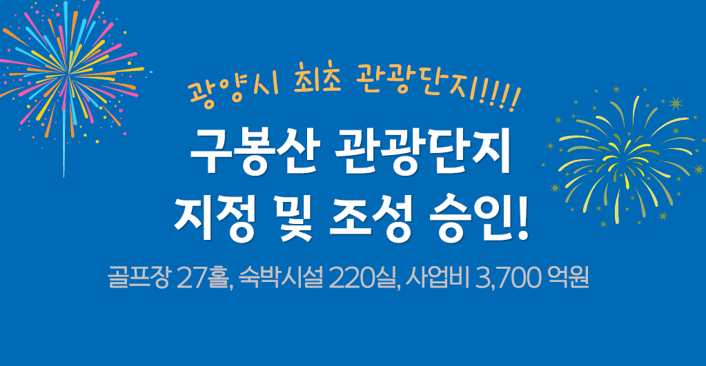 지역민들은 “하루빨리 착공해 시민들이 가까운 곳에서 관광휴양문화를 누릴 수 있기를 바라며, 구봉산권이 광양을 대표하는 관광단지이자 남해안 관광벨트의 거점 앵커시설로 자리매김하길 기대한다”고 전했다.