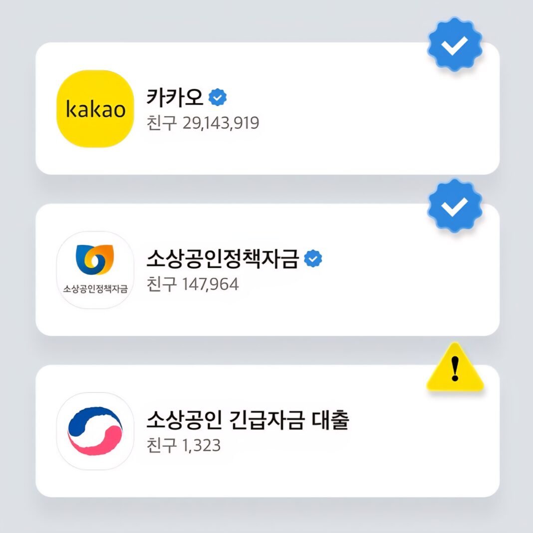 카카오는 사칭 피해를 막기 위해 ‘페이크 시그널’ 등 사칭 탐지 기능과 지인 사칭 방지 기능을 도입했다. 친구로 등록되지 않은 사람이 대화를 시도하면 경고 팝업창이 뜨고, 해외 번호 가입자는 주황색 지구본 아이콘과 국가 정보가 표시된다. 카카오는 이러한 기능을 최신 버전에서 반드시 활성화해야 한다고 강조했다.