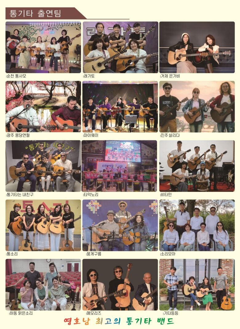 출연팀으로는 광양(기타 등등)을 비롯해 광주(몽당연필), 순천(통사모), 거제(은가비), 진주(살리다), 하동(맑으소리), 래가토, 마이웨이, 통기타는 내 친구, 타악노리, 비타민, 통소리, 뭉게구름, 소리모아, 메모리즈 등 총 15개 밴드가 참여한다. 각 팀은 다양한 장르의 통기타 음악을 선보이며 ‘바로나’, ‘Top of the World’, ‘꿈의 대화’, ‘California Dreaming’ 등 세대를 잇는 명곡으로 무대를 채운다.