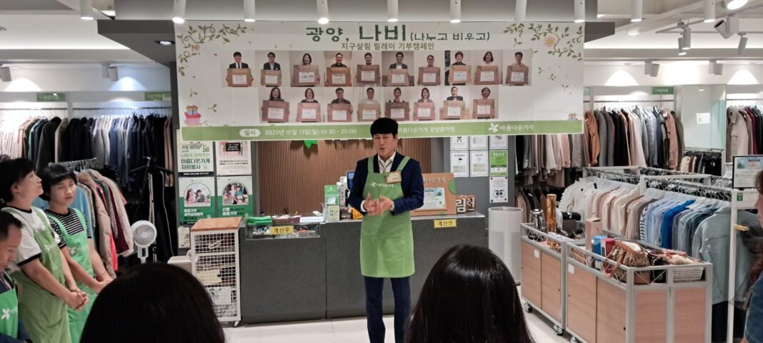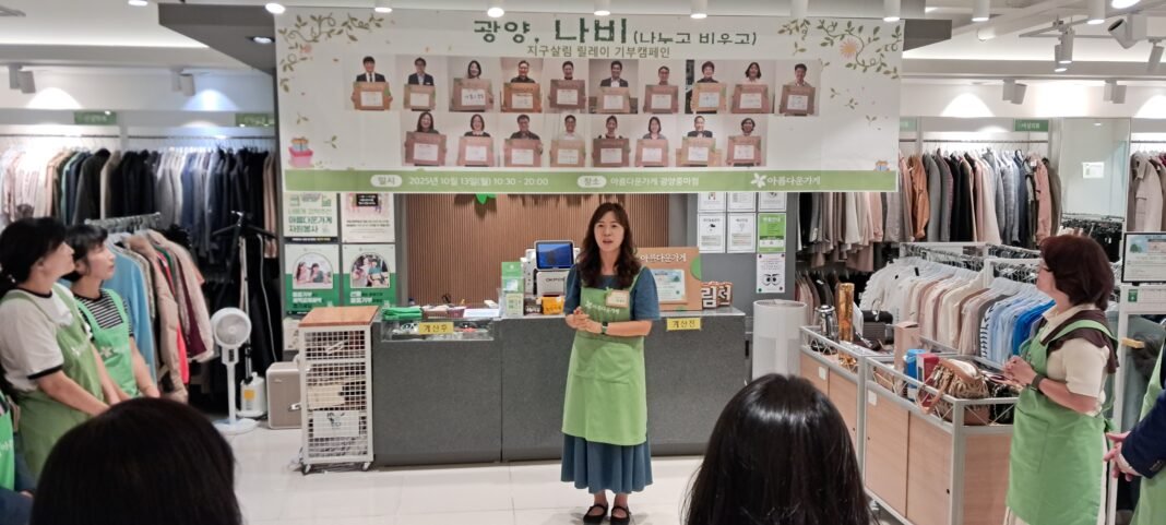 (재)아름다운가게 광양중마점은 지난 10월 13일, ‘2025 광양 나비(나누고 비우고) 릴레이기부캠페인’의 일환으로 특별 행사를 개최했다.